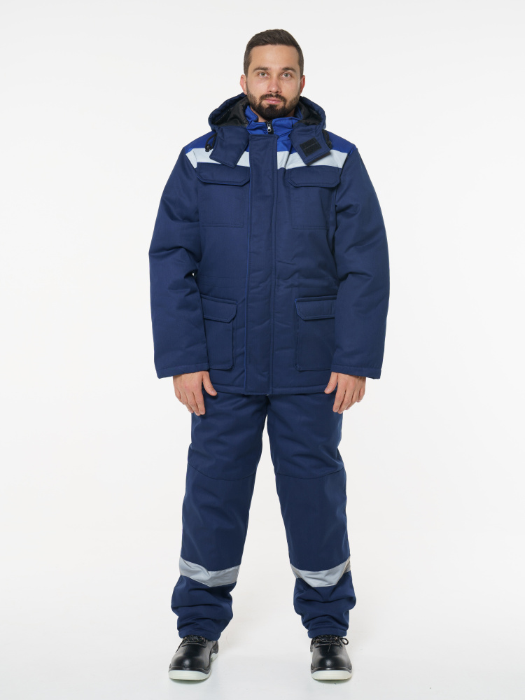 Костюм состоит из удлиненной куртки со съемным капюшоном и полукомбинезона.