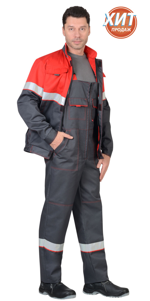 В костюме предусмотрены светоотражающие элементы (СОП) шириной 50мм для обозначения сигнальной видимости в темное время суток.