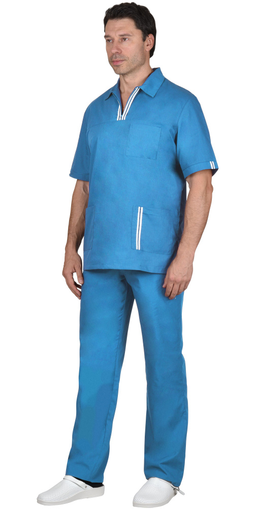 Брюки прямого покроя, пояс притачной, со стяжкой на резинку.