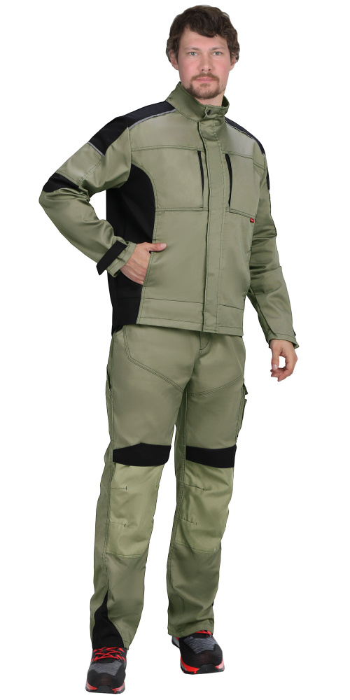 Куртка двухцветная, прямого силуэта, укороченная, с воротником стойка, с центральной застёжкой на молнию от края воротника до низа, накрытую ветрозащитной планкой и внутренней короткой планкой по правому борту, с нагрудными карманами с молнией, с нижними карманами в шве. Рукава втачные, объём по низу рукава регулируется хлястиком с текстильной застёжкой «липучка». В куртке предусмотрен СВ кант.