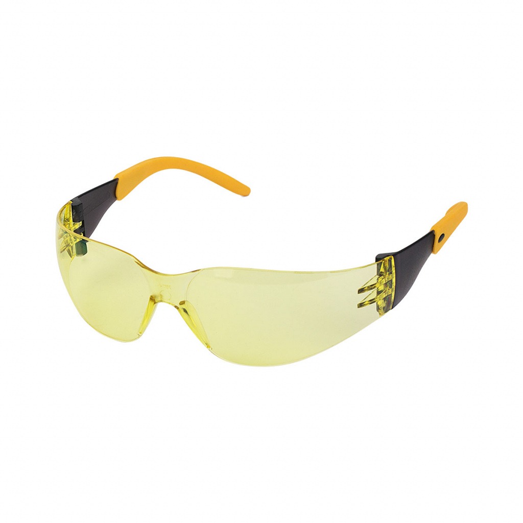 Легкие очки современного дизайна с мягкими заушниками для защиты от высокоскоростных летящих частиц с низким уровнем кинетической энергии и УФ-излучения. Увеличенная боковая защита за счет изогнутой формы линзы. Линзы с двусторонним антизапотевающим покрытием и покрытием против царапин. Увеличенный панорамный обзор. Дужки анатомической формы оснащены эластичными заушниками, создают дополнительный комфорт во время работы. Желтая линза предназначена для работы в условиях плохой видимости (пыль, туман), улучшает контрастность объектов.