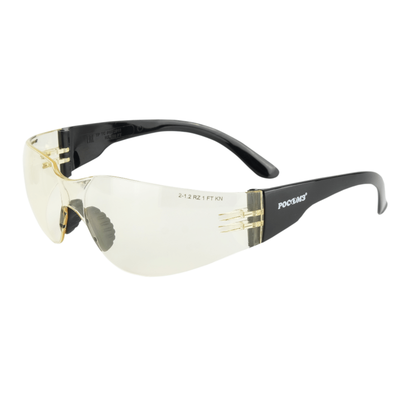 Стекло со светло-желтым светофильтром с защитой 420 нм из поликарбоната с покрытием super (двустороннее твердое покрытие высокого качества устойчивое к запотеванию, сохраняющее свои свойства при интенсивной эксплуатации). Оптический класс 1. Защитные свойства: 2С-1,2 RZ 1 FT N - RZ 253 FT. Очки можно мыть и дезинфицировать. Модель оснащена мягким носоупором из ТЭП. Дополнительно могут комплектоваться обтюратором (артикул 00817). Возможно применять с противошумными наушниками, каской и респиратором.