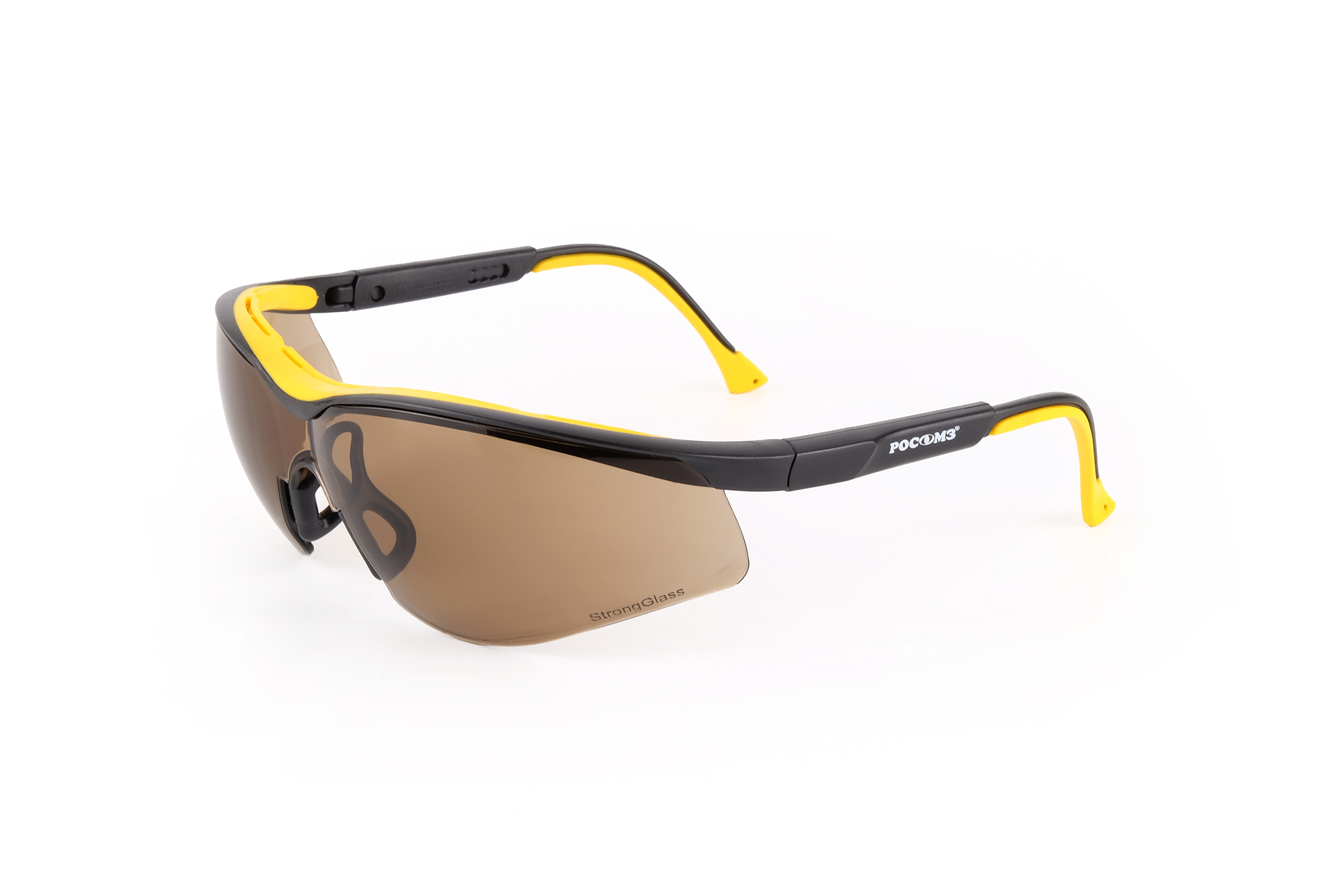 Стекло с коричневым (солнцезащитным) светофильтром из поликарбоната (УФ400) с покрытием СтронГлас 120" (двустороннее твердое покрытие высокого качества, устойчивое к запотеванию до 120 сек., истиранию и царапинам, сохраняющее свои свойства при интенсивной эксплуатации в т.ч. при работе с абразивами).