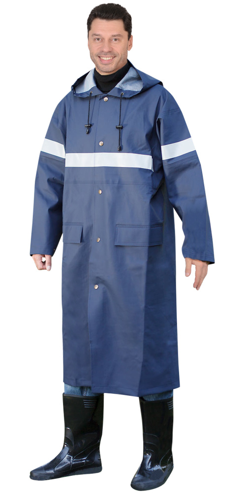 Конструкция плаща, материал, из которого он изготовлен, и сварные швы обеспечивают защиту от воды, ветра, сырой нефти и нефтепродуктов.