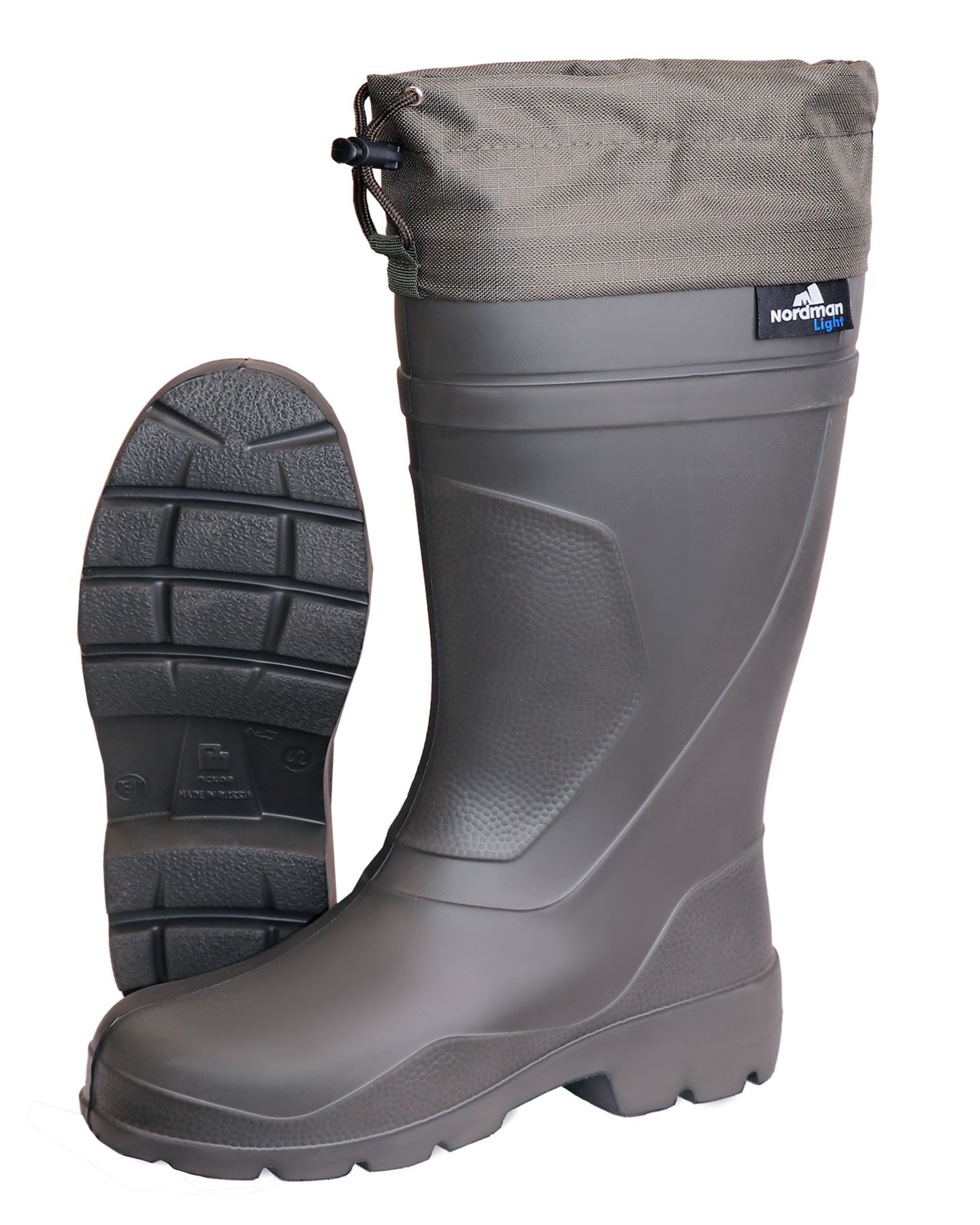 Внутри - съёмный фольгированный вкладыш. Он хорошо сохраняет тепло в прохладную погоду и занимает мало места, что позволяет носить сапоги без утеплителя и в межсезонье (до -15 ºС)