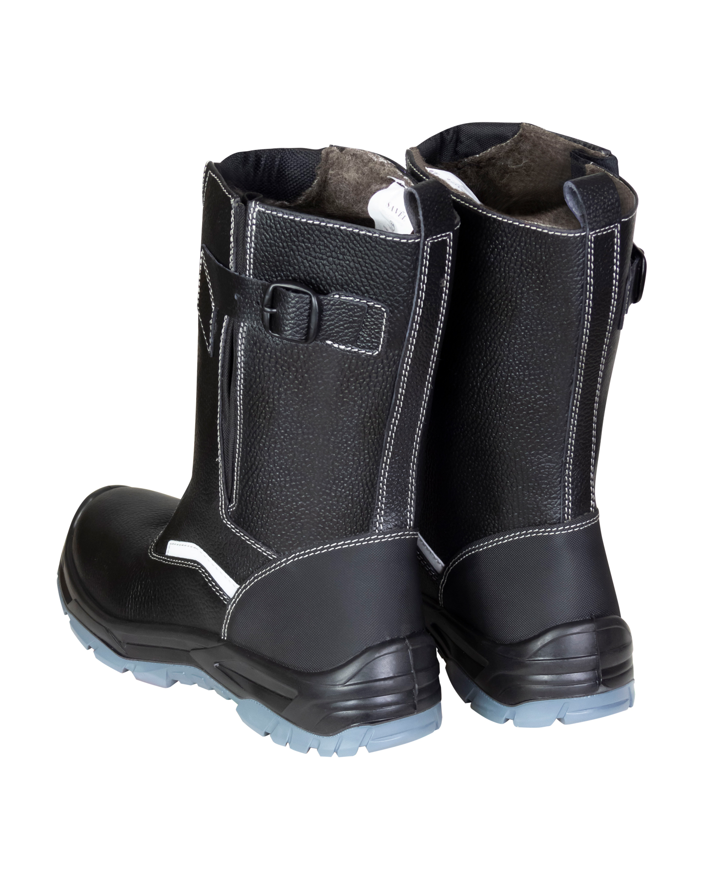 Голенище в сапогах "SAVEL-ДЖЕТ" из кожи, с помощью ремешка возможна регулировка по ширине, подкладка и вкладная стелька утеплённые, из шерстина. Имеются световозвращающие элементы для привлечения внимания и исключения несчастных случаев на производстве в темное время суток.