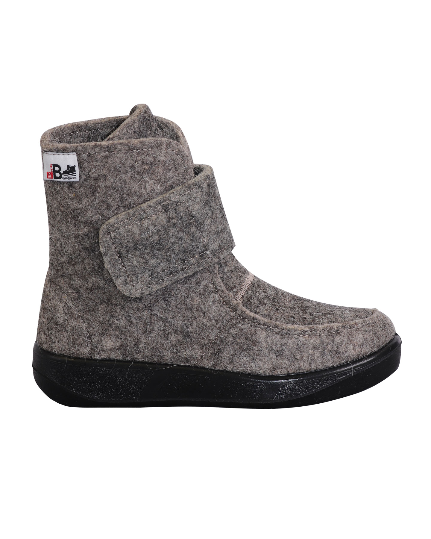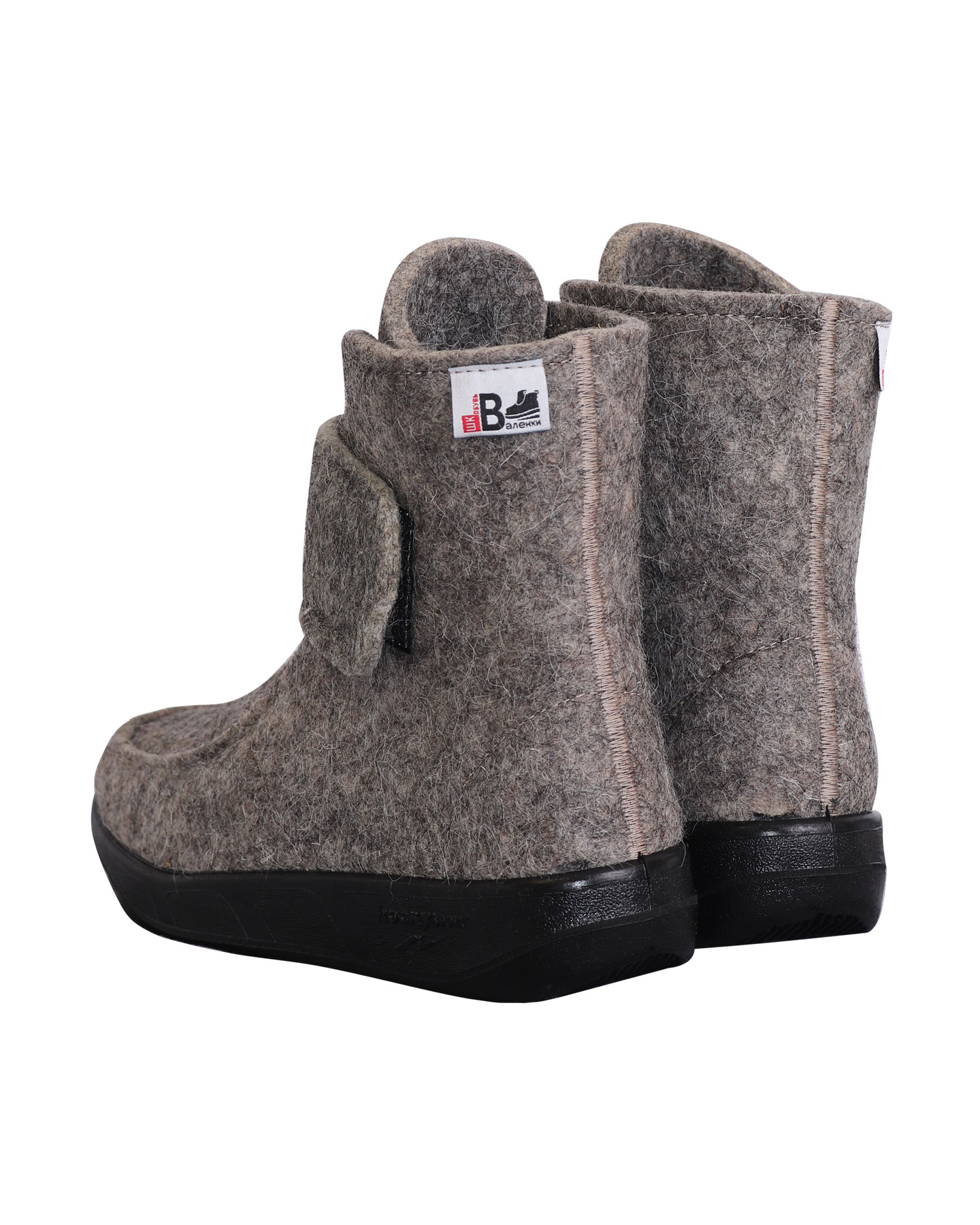 Модель имеет удобный хлястик, который обхватывает ногу, так что можно регулировать полноту голени. Застежка на липучке позволяет легко надевать и снимать валенки.